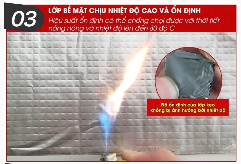 – Băng keo chống thấm có lớp màng được sản xuất theo công nghệ của Nhật Bản cực kỳ dẻo dai và chắc chắn chống Oxy hóa, ngăn tia cực tím bảo vệ lớp phôi bạc cao cấp.
