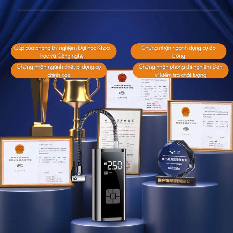 - Chế độ bơm: Ô tô / Xe máy / Xe đạp / Bóng / Tùy chỉnh