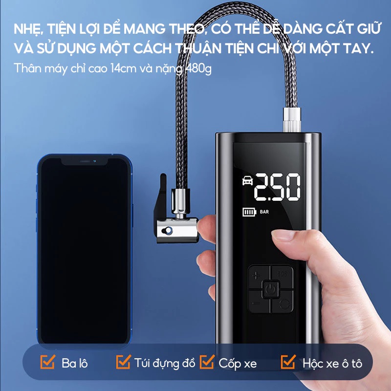 - Không dây, pin mạnh, dễ bỏ vào cốp xe ô tô/xe máy.