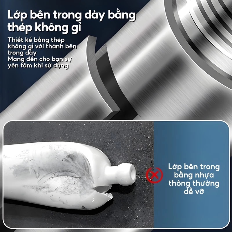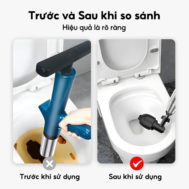 – Đây là một trong những dụng cụ thông tắc bồn cầu bằng khí nén thông minh, thiết bị này thông tắc dựa vào áp lực của không khí được nén bên trong ống, sau đó chỉ cần kích hoạt công tắc xả là lượng hơi sẻ được giải phóng ra với áp suất cực mạnh khi đó chất thải sẻ được tống đi.