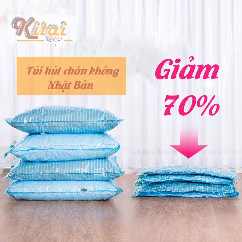Túi hút chân không quần áo chăn màn Kitai Nhật Bản ĐỰNG QUẦN ÁO – CHĂN MÀN – ĐI DU LỊCH – DỌN NHÀ – CHỐNG ẨM MỐC.Túi hút chân không Kitai này có độ bền từ 3 – 5 năm thậm chí lâu hơn, giảm đến 70% thể tích giúp cất gọn gàng tiết kiện diện tích và ngăn nắp hơn.